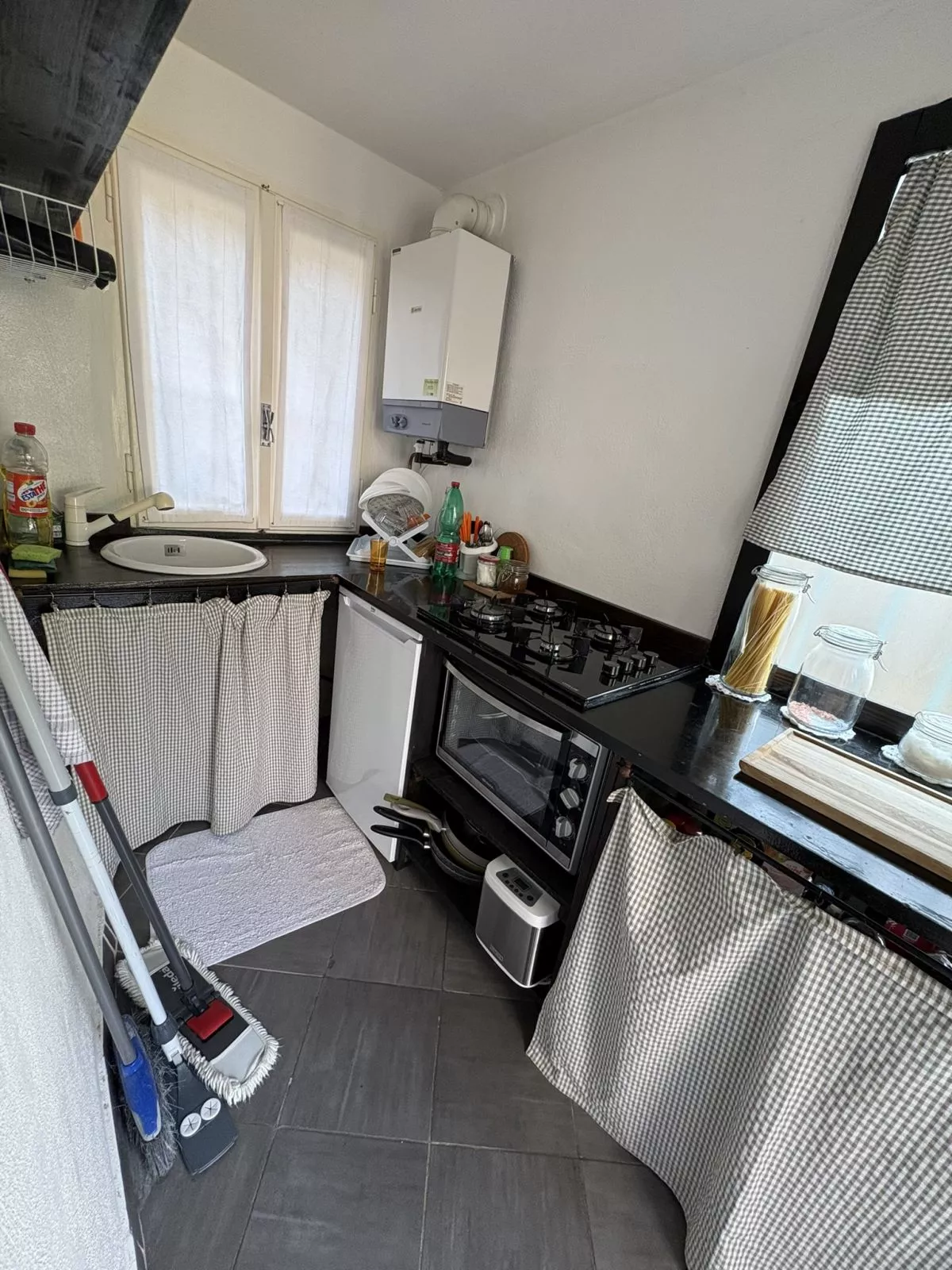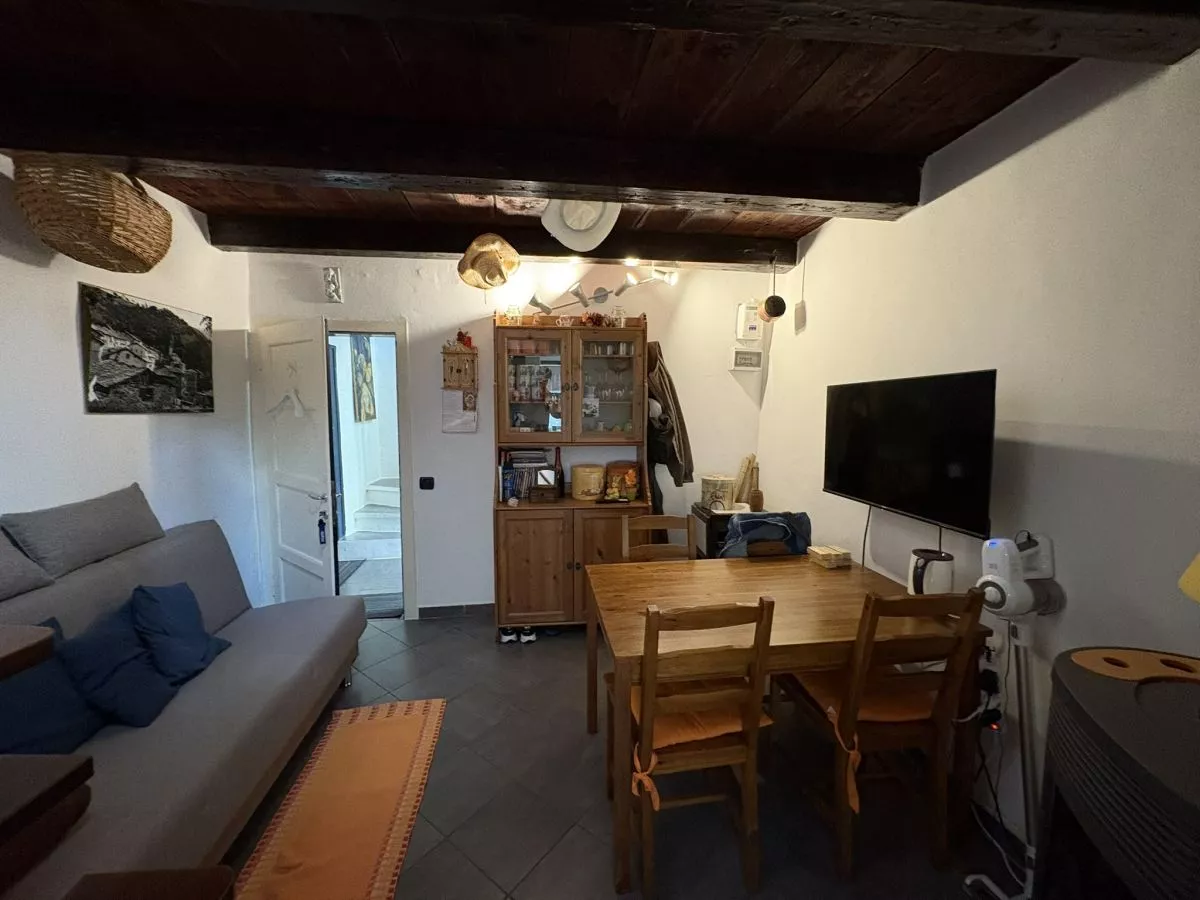 L’ingresso si apre su un accogliente soggiorno e uno spazio destinato alla cucina, che affaccia direttamente su un grazioso giardino privato: un angolo verde ideale per momenti di relax o per godersi pranzi all’aperto durante la bella stagione.