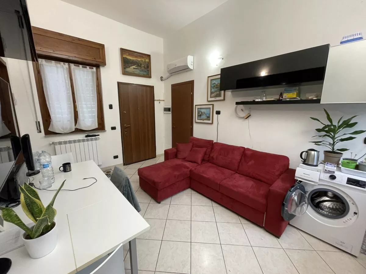 Soggiorno con angolo cottura, spaziosa camera matrimoniale, moderno bagno finestrato.