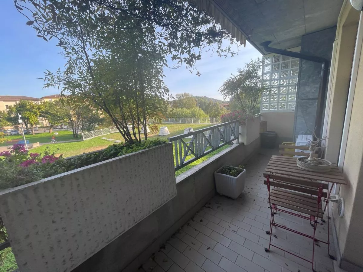 Ampio e luminoso soggiorno, angolo cottura, ampio balcone con vista sul parco, camera matrimoniale con cabina armadio, bagno cieco.