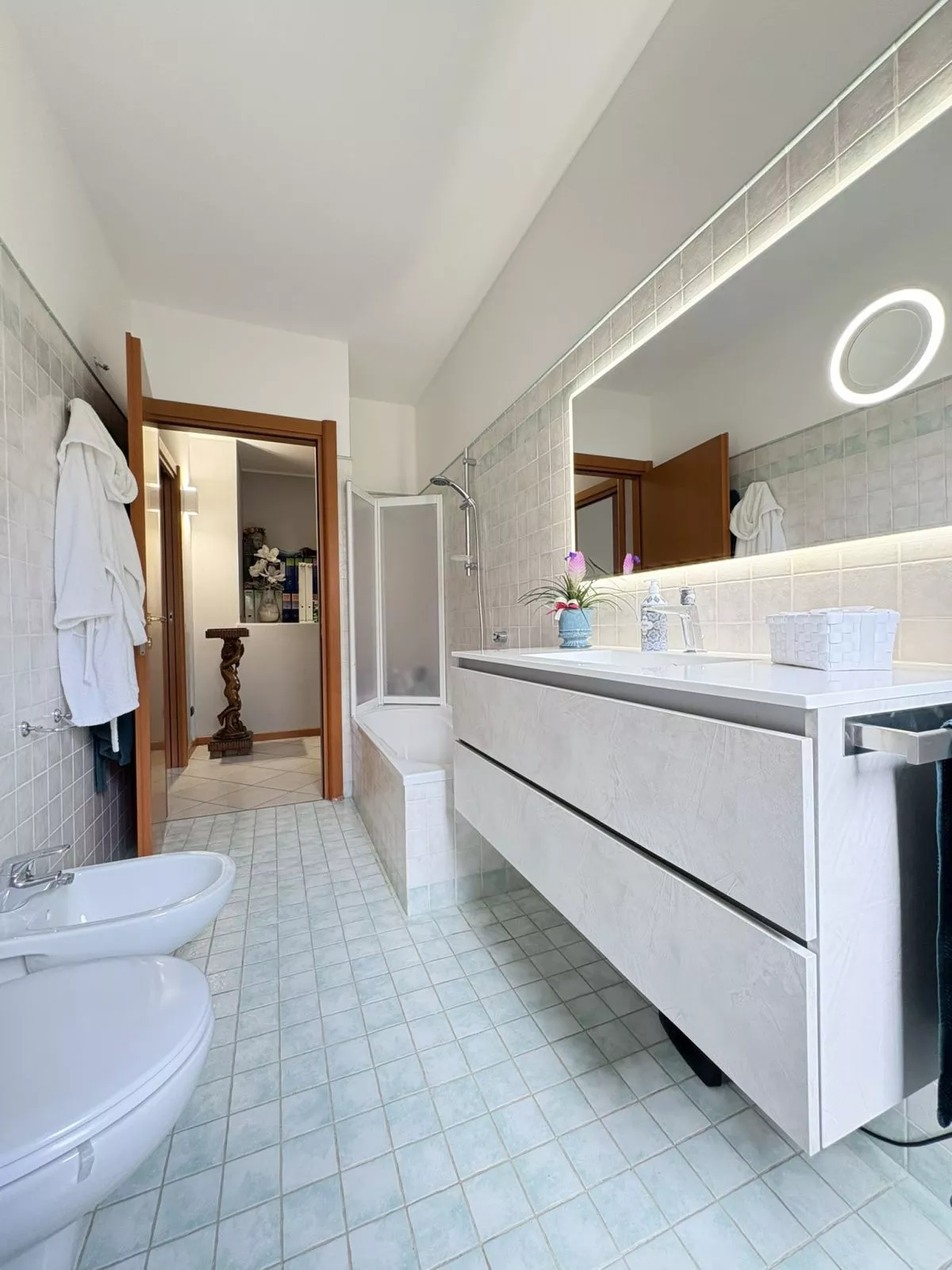 A completare la proprietà vi è un box doppio in lunghezza, comodo per chi necessita di più spazio. La casa è dotata di aria condizionata nella zona giorno, inferriate di sicurezza, zanzariere e impianto d’allarme. Le spese condominiali sono contenute, rendendo questa soluzione ancora più interessante.