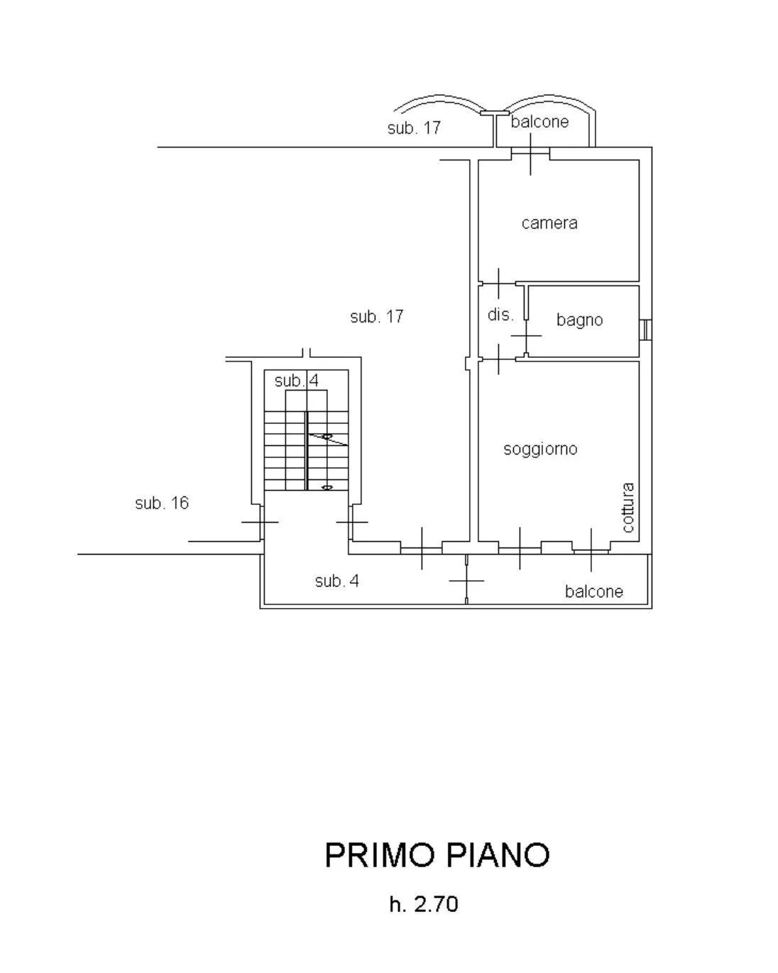 Ampio salone con angolo cottura, balconi, camera matrimoniale, bagno.